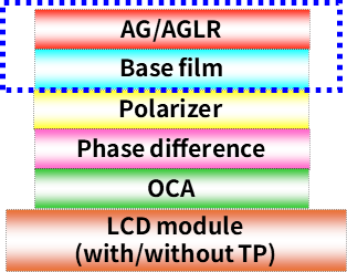 如、防反射及防带电性能优异、可实现高对比度的LR(Low Reflection:低反射)薄膜、具有优异的防眩光特性、减少显示器表面映像的AG(Anti Glare:防眩光)薄膜等。