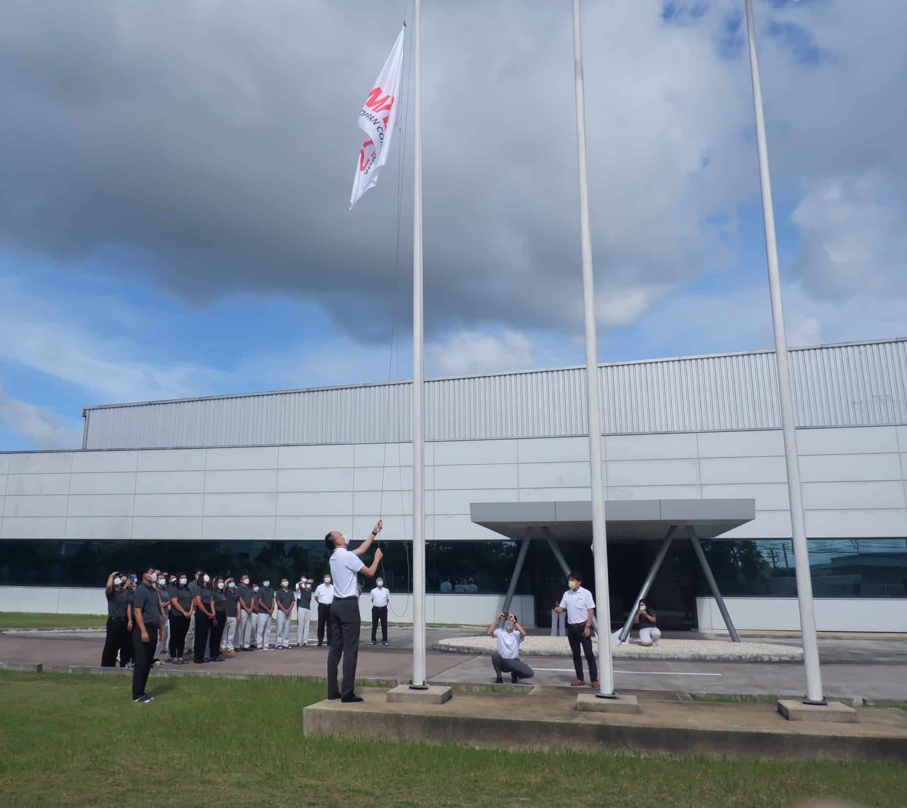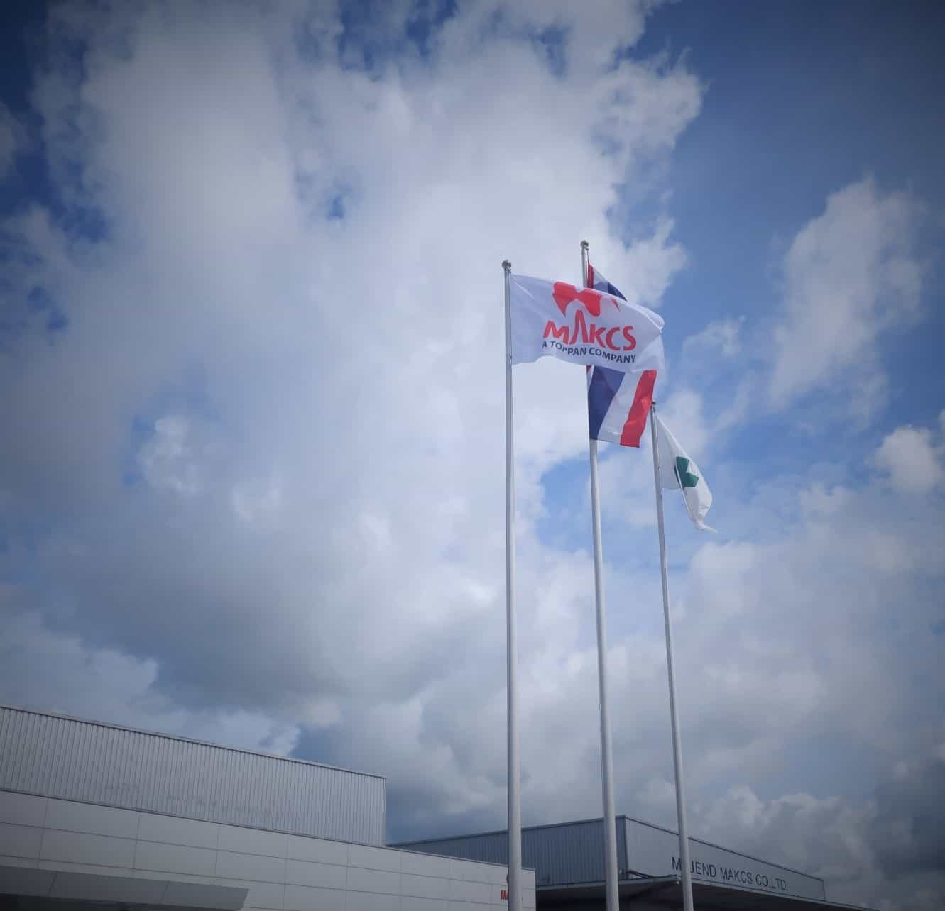Toppan and Majend Makcs, which joined the Toppan Group in May 2022, held a ceremony to unveil the new Majend Makcs corporate flag at its Amata City Rayong Plant in Rayong Province, Thailand, on June 6. The ceremony was attended by newly appointed Majend Makcs CEO Shin Kukita, COO Nobuyuki Takahashi, Plant Manager Sorawut Han-Asa, and 50 employees.