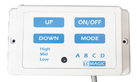 使用方法に合わせて2モデルから選択可能。難燃性筐体、漏電遮断機能を内蔵した安心・安全設計。市販の壁面スイッチとの組み合わせにより、LC MAGICのON/OFF操作が可能。