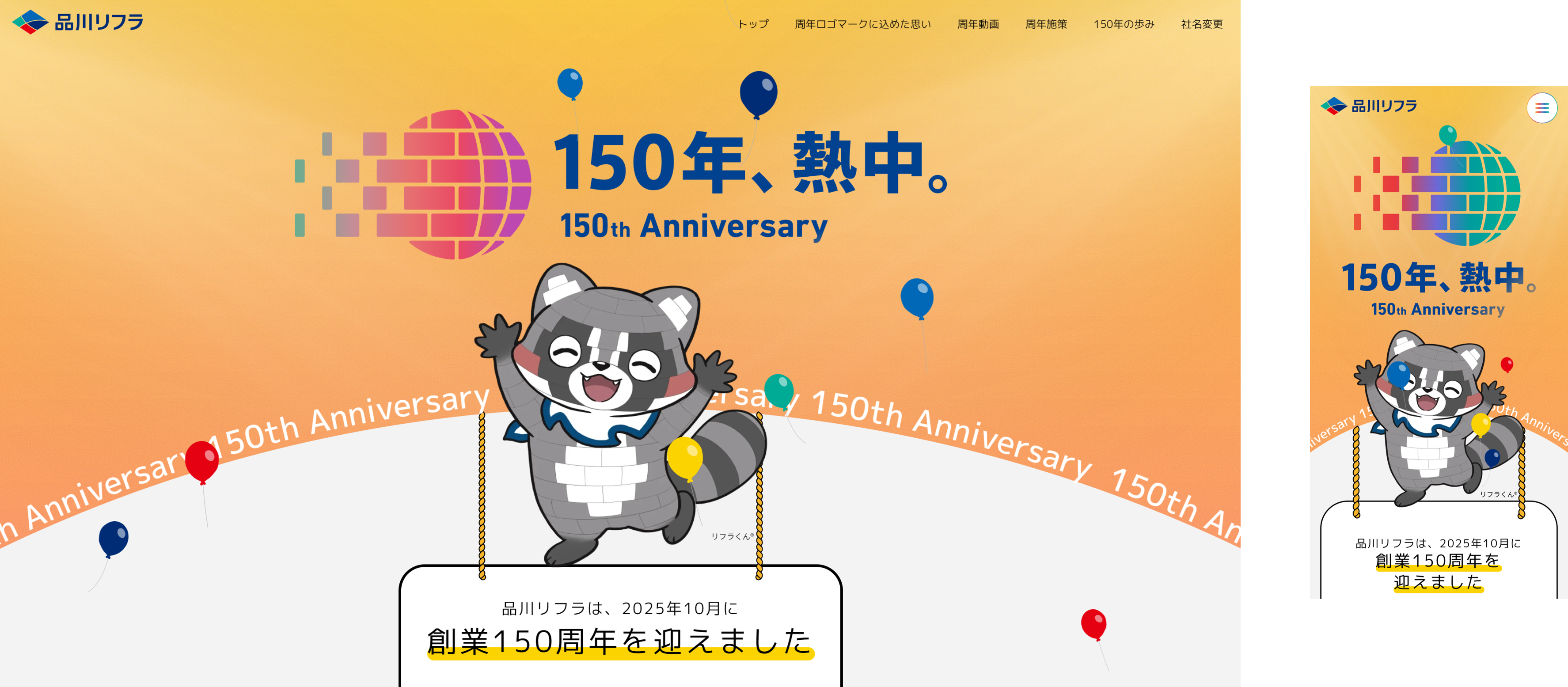 左:周年サイト(PC版)、右:周年サイト(スマホ版)