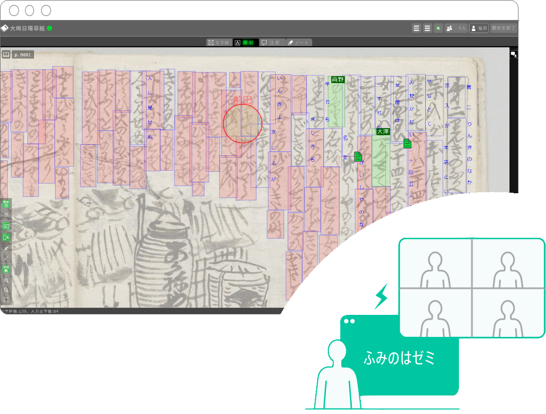 解読結果をインターネット公開や館内展示するためのソリューション。くずし字資料を多くの方に読んでもらう体験づくりをサポートします。