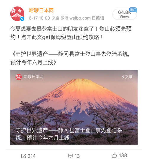 哈啰日本 Weibo掲載