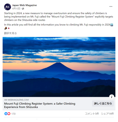 Web登録システムと多言語広報の連携による富士山オーバーツーリズム対策。安全な登山の周知と社会実験を通じた課題解決モデルの構築