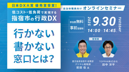 今回は、TOPPANと鹿児島県指宿市が協働し、低コスト・低負荷で職員が自走できるDX推進手法「指宿モデル」の事例をご紹介しました。
