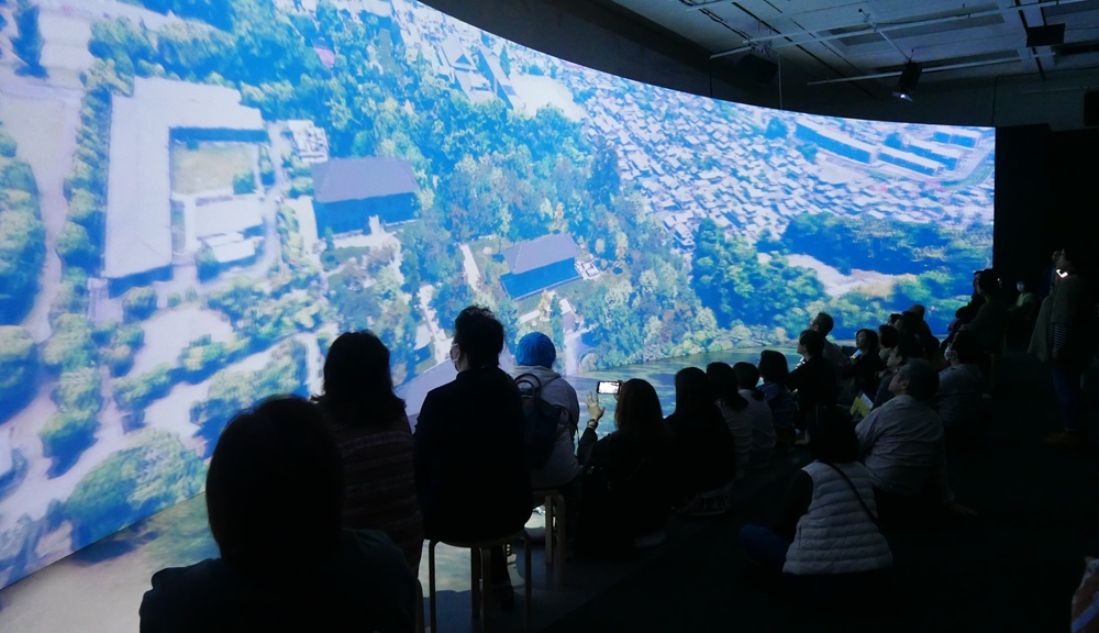 巨大スクリーンに映し出された宝物。多くの来場者がスクリーンに見入っていた