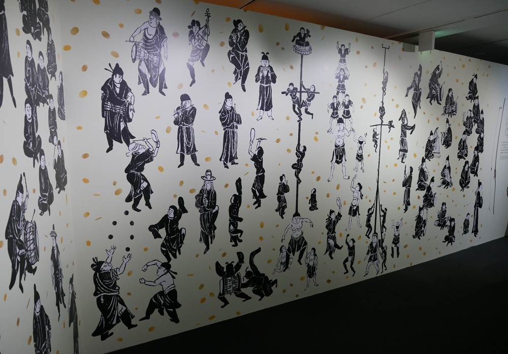 「墨絵弾弓」には100人近い人々の表情や仕草が丁寧に描かれている