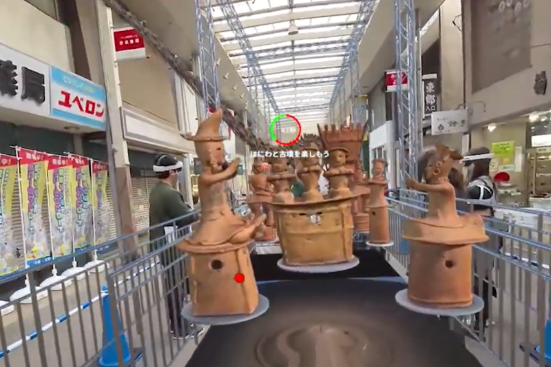 さらに、デジタルデータを活用したMRコンテンツを制作して実施したのが、前橋中央通り商店街での体験型イベント「群馬デジタルミュージアムロード」です。専用ゴーグルを装着して恐竜骨格や作品を鑑賞できる非日常体験を提供しました。