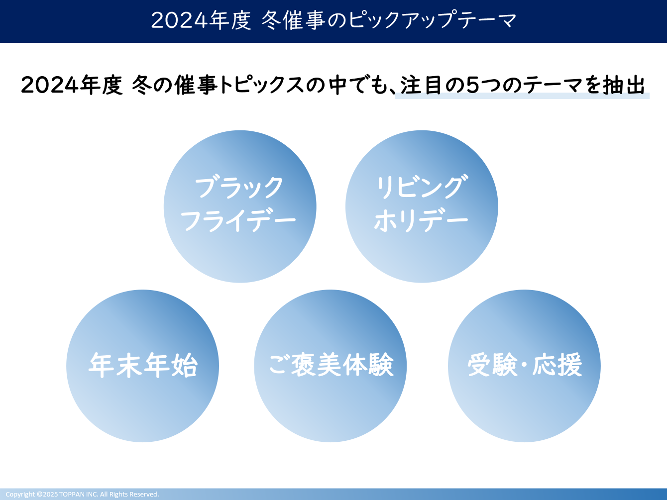 TOPPANのオリジナル調査レポート『催事レポート 2024年度 -冬特別版-』についてのご紹介は以上です。本レポートについて、ご興味を持っていただいた方、もっと詳しく知りたい方は、本ウェブページ右上もしくは下段のお問い合わせボタンからご連絡ください。