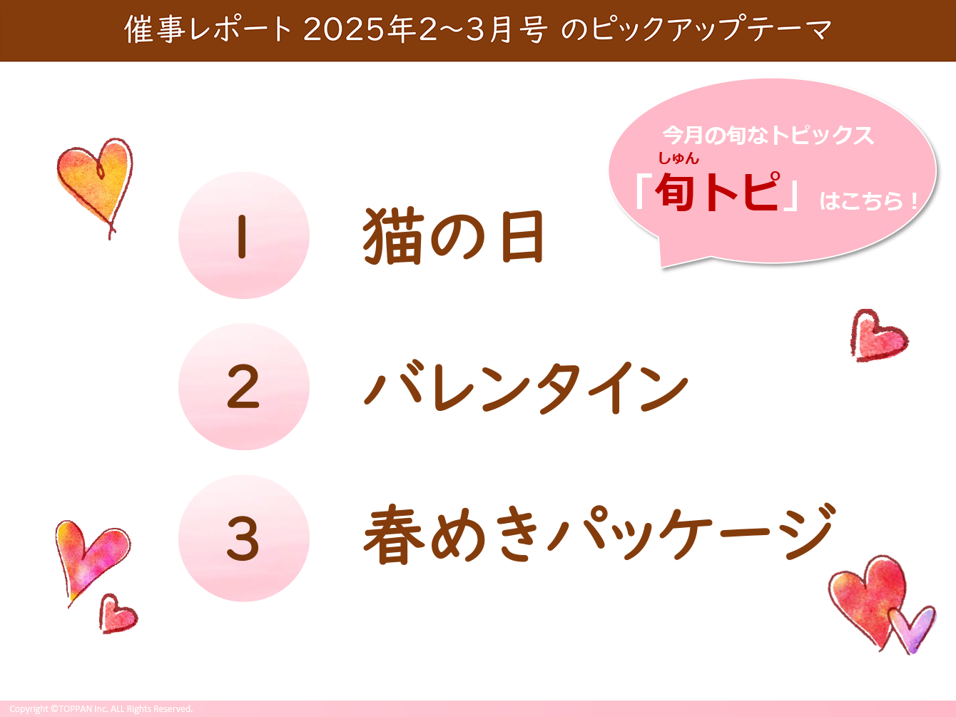 TOPPANのオリジナル調査レポート『催事レポート 2025年2~3月号』についてのご紹介は以上です。本レポートについて、ご興味を持っていただいた方、もっと詳しく知りたい方は、本ウェブページ右上もしくは下段のお問い合わせボタンからご連絡ください。