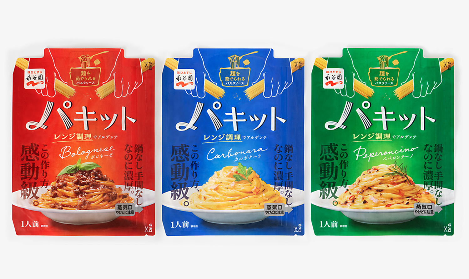 パッケージデザインはその革新的な商品特長を直感的に理解できるよう、調理方法とネーミングイメージを統合し、ブランドアイコン(パッケージ上部のパスタを折る手のイラスト)として展開。トッパンはパッケージのハード、ソフトの両面から商品づくりを支援した。