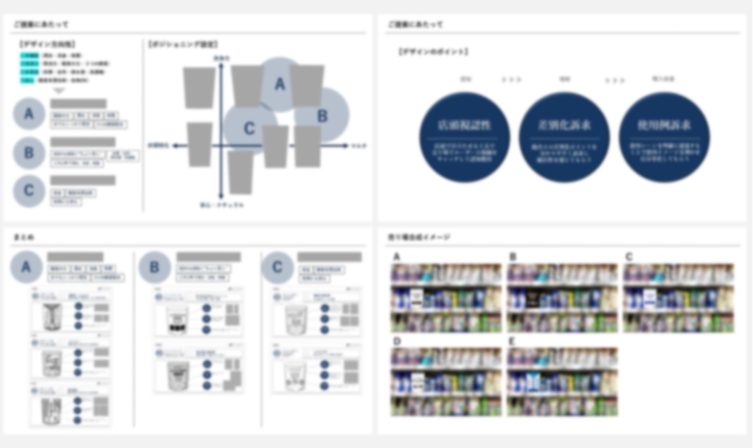 差別化を図るポイントを明確に導き出し、実際の売り場を検証してデザイン方針を決定した。