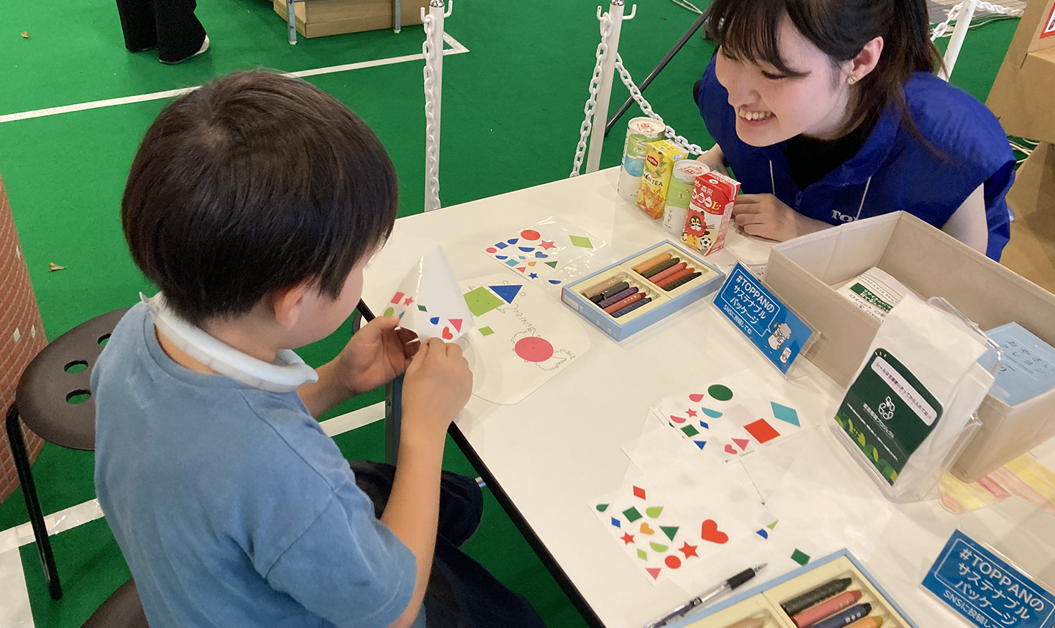 紙製飲料容器を含む再生紙でのペイントうちわ作りイベントと、資源循環を学ぶクイズラリーを通じて、リサイクルの仕組みを体感できる場を提供した。